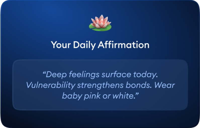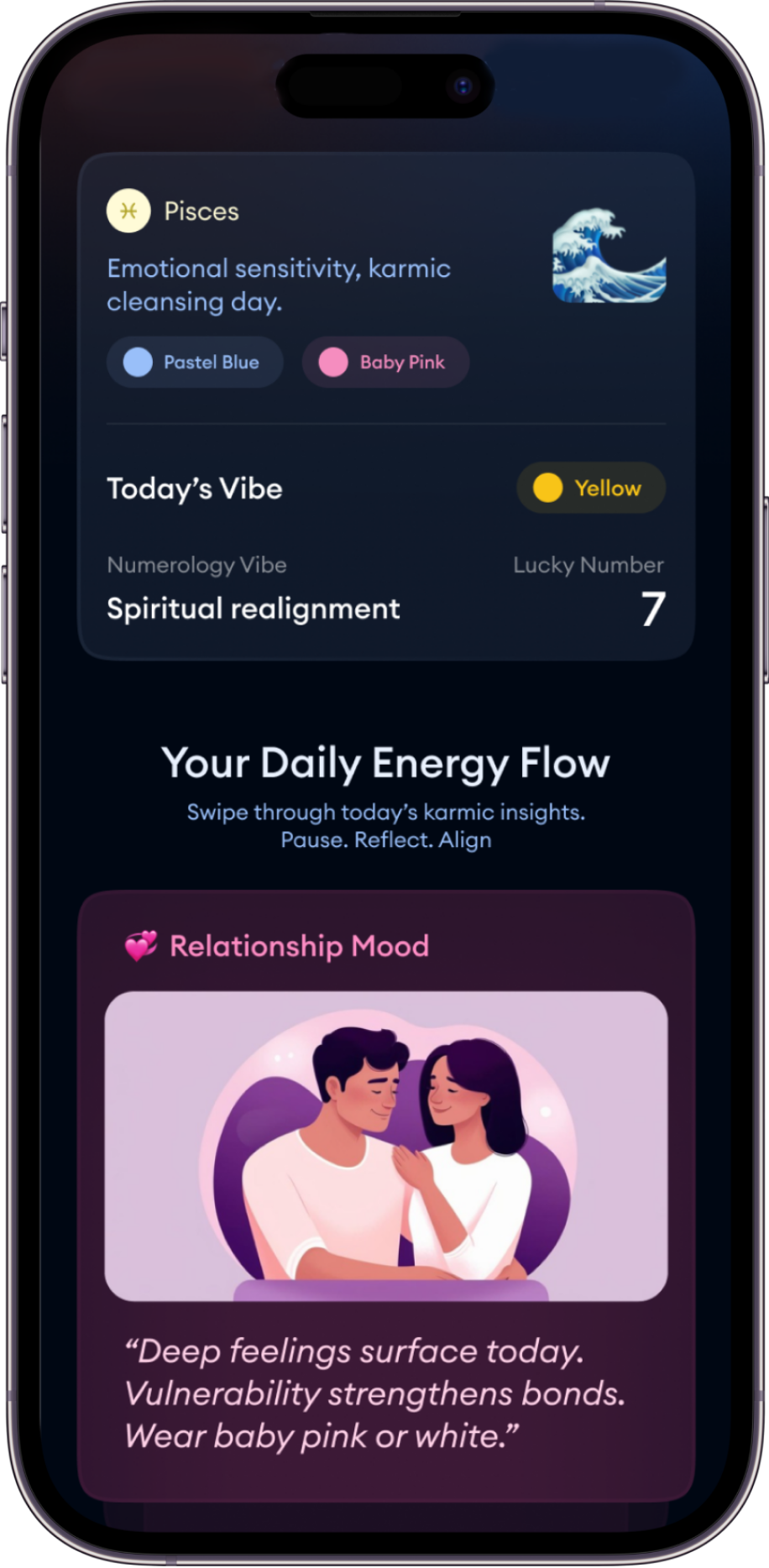 Start your day with deep, personalized guidance. Get daily predictions, lucky colors, numerology vibes, and emotional cues — all curated through AI and Vedic astrology to help you align, act, and thrive.